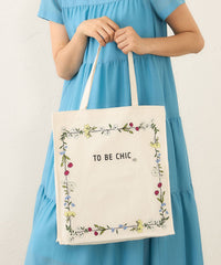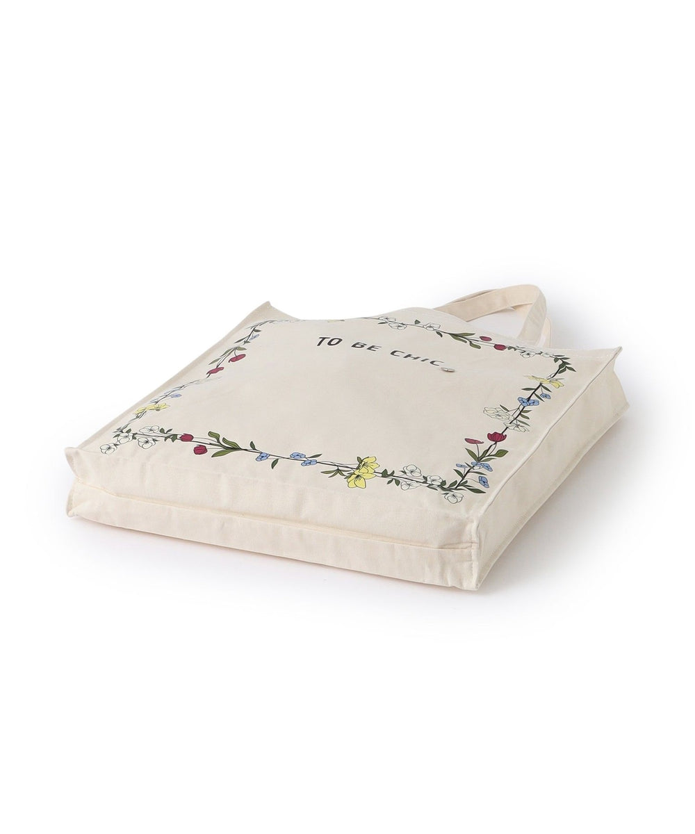 薄手の綿キャンバス素材のデイリーにお持ちいただける縦長トートバッグです。フロントには華やかなフラワーデザインのフレームをプリントで施し、中央にはTO BE CHIC ロゴをポイントに。B4サイズが縦に入る容量で夏のお出掛けアイテムの日傘や帽子などがすっぽりとはいり便利にお持ちいただけます。