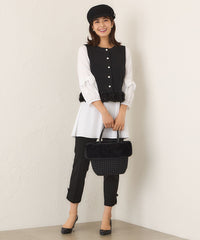 バスケット用にサテン生地を細長く裁断して芯を入れたパーツをつくり、ひとつひとつ手仕事で編んでバッグに仕立てました。ファー付きの中袋は取り外しができます。ファー付き中袋をとれば季節を問わずオールシーズンでお持ちいただけます。光沢のあるサテンとファーの組み合わせはラグジュアリーな雰囲気です。普段使いしやすい程よい大きさのサイズです。