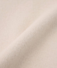 タテ糸にウール100%、ヨコ糸にアンゴラ100%の糸を贅沢に使用し、ビーバー仕上げを施したソフトなコート素材です。起毛加工の際に、ヨコ糸のアンゴラが多く掻き出されることで、糸本来の上品なツヤ感と柔らかさが最大限に引き出されています。さらに発色も美しく、ワンランク上の上質な風合いと見え感を実現しています。