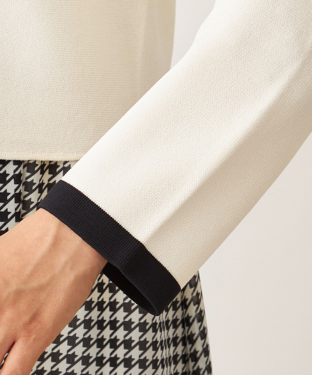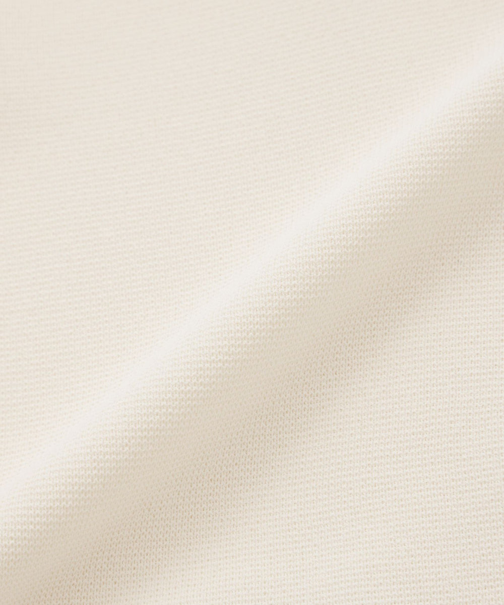 ニット部分には、レーヨンナイロンのストレッチ素材を使用。素材本来の程よいキックバックが快適な着心地を生み出し、強撚糸ならではの清涼感と、すっきりとした編み目が特徴です。TO BE CHIC定番の糸で、上品さと機能性を兼ね備えた仕上がりとなっています。