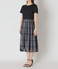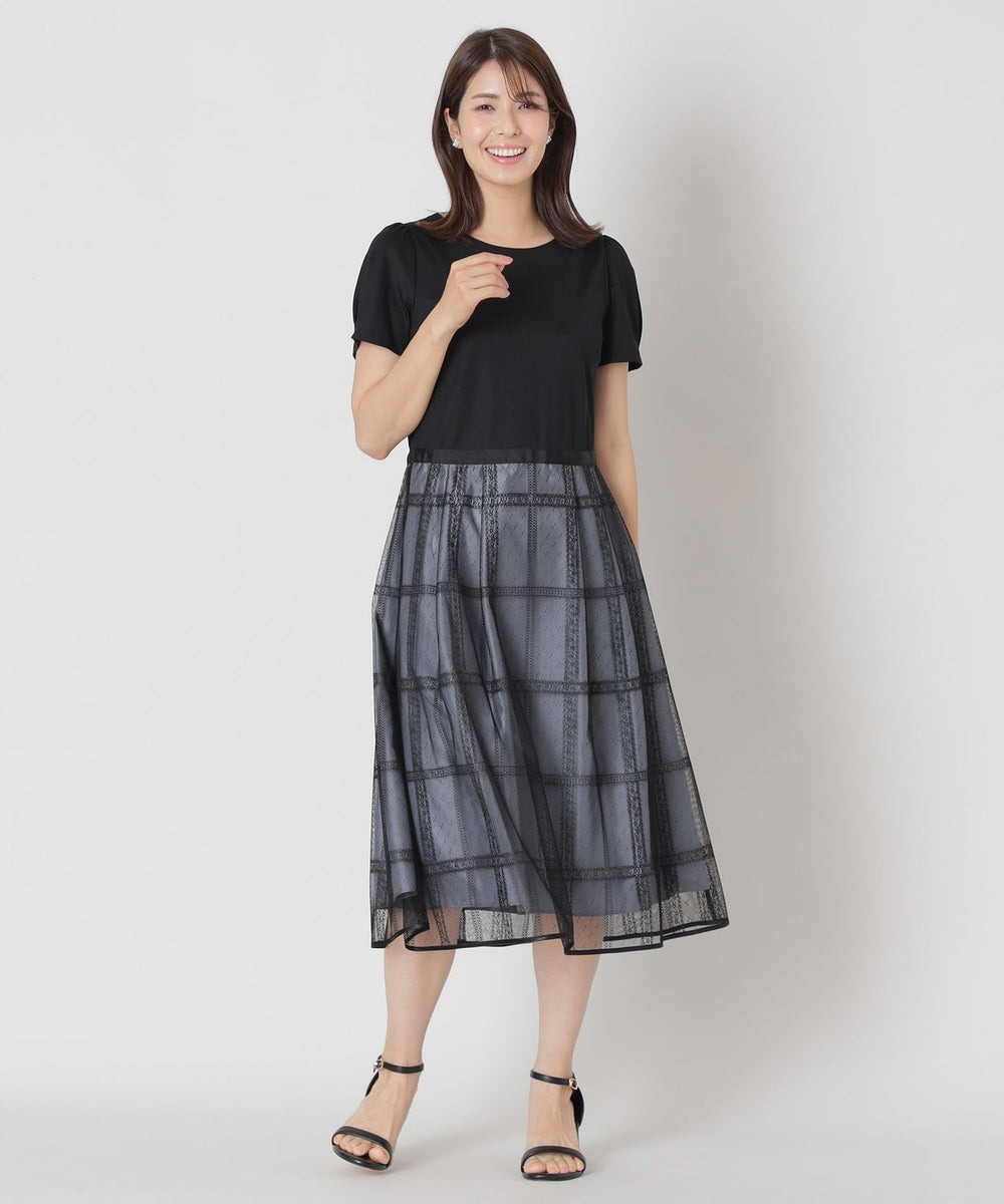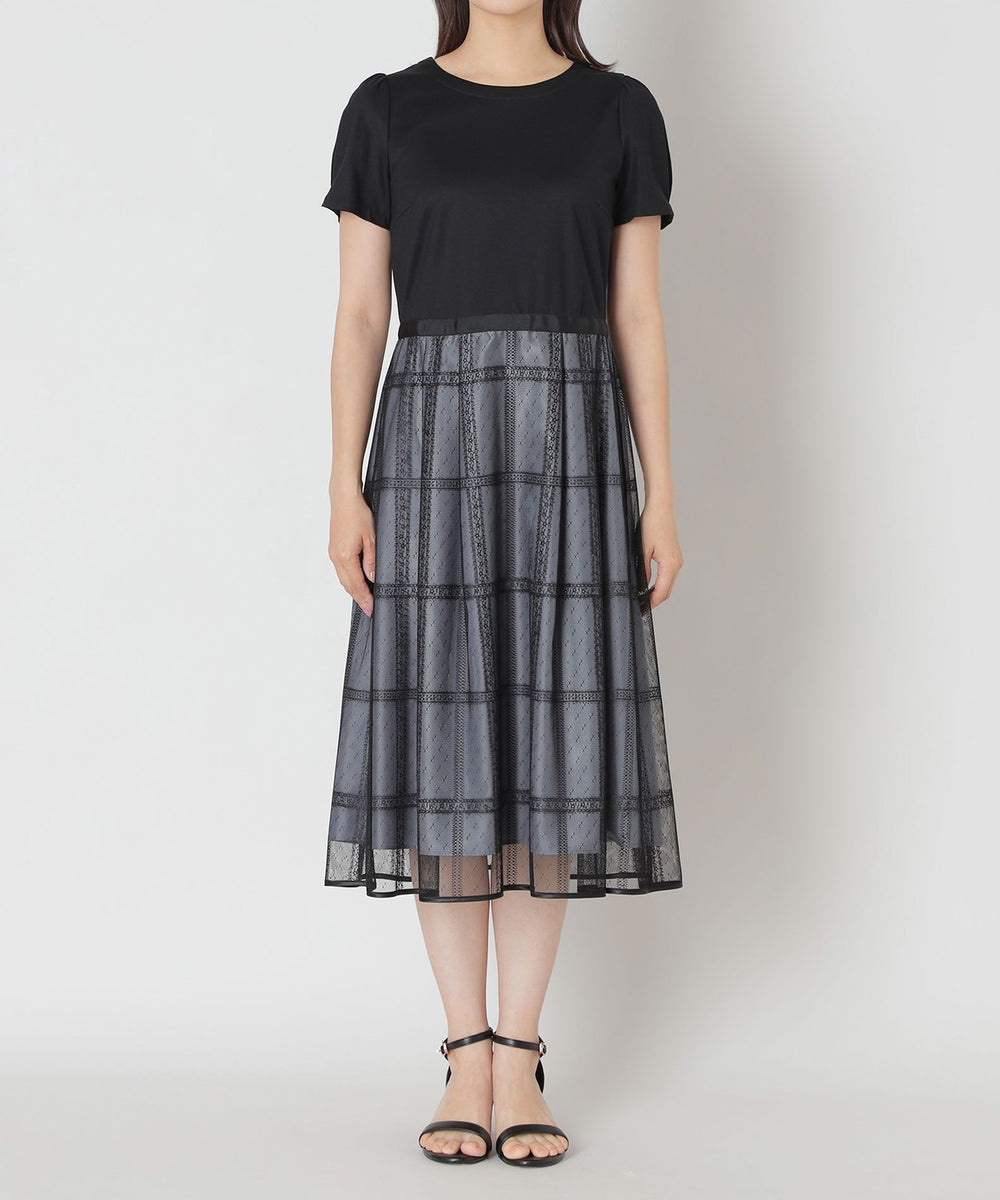 異素材の組み合わせが生み出す奥行きのある表情と、快適な着心地を兼ね備えた一着。繊細なチュールレースとカットソー素材をドッキングし、エレガンスとカジュアルを絶妙に融合させたワンピースです。トップスはあえてシンプルに仕立てることで、合わせるアイテムを選ばず、幅広いコーディネートが可能に。TO BE CHICらしい上品さが光る、洗練されたデザインです。
