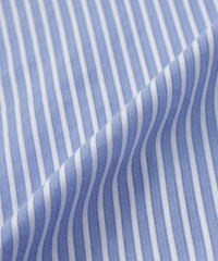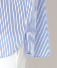 綿100%で織ったストライプ素材です。ストライプ部分にはドビー感と凹凸感を出しています。極細の糸を使って高級感と清涼感を出し、軽く仕上げました。