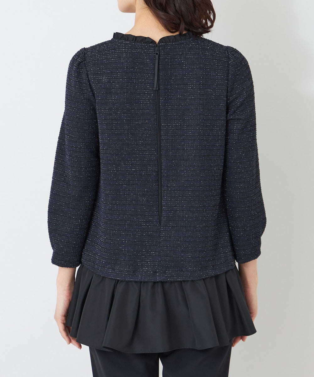 カットツイードとタフタ素材をドッキングした、素材感のコントラストが魅力の一枚。配色によってカジュアルにもエレガントにも幅広いスタイリングが可能なチュニックです。