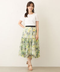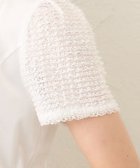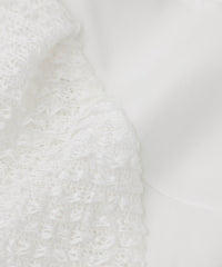 カットソー部分には、バイオ加工をはじめとする複数の工程を施し、生地の段階で毛羽を極限まで除去。目付バランスと高密度な編み立てにより、滑らかな風合いと美しい表面感を実現しつつ、熱伝導率を高めた接触冷感素材に仕上げています。別布には、見た目に特長があるフリルデザインのストレッチラッセルレースを使用しています。