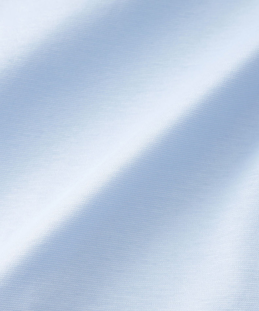 加工では光沢を引き出すためシルケットとガス焼きを施し、毛羽を極限までカットしてドレープのきいた伸縮性のあるファブリックに仕上げています。