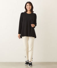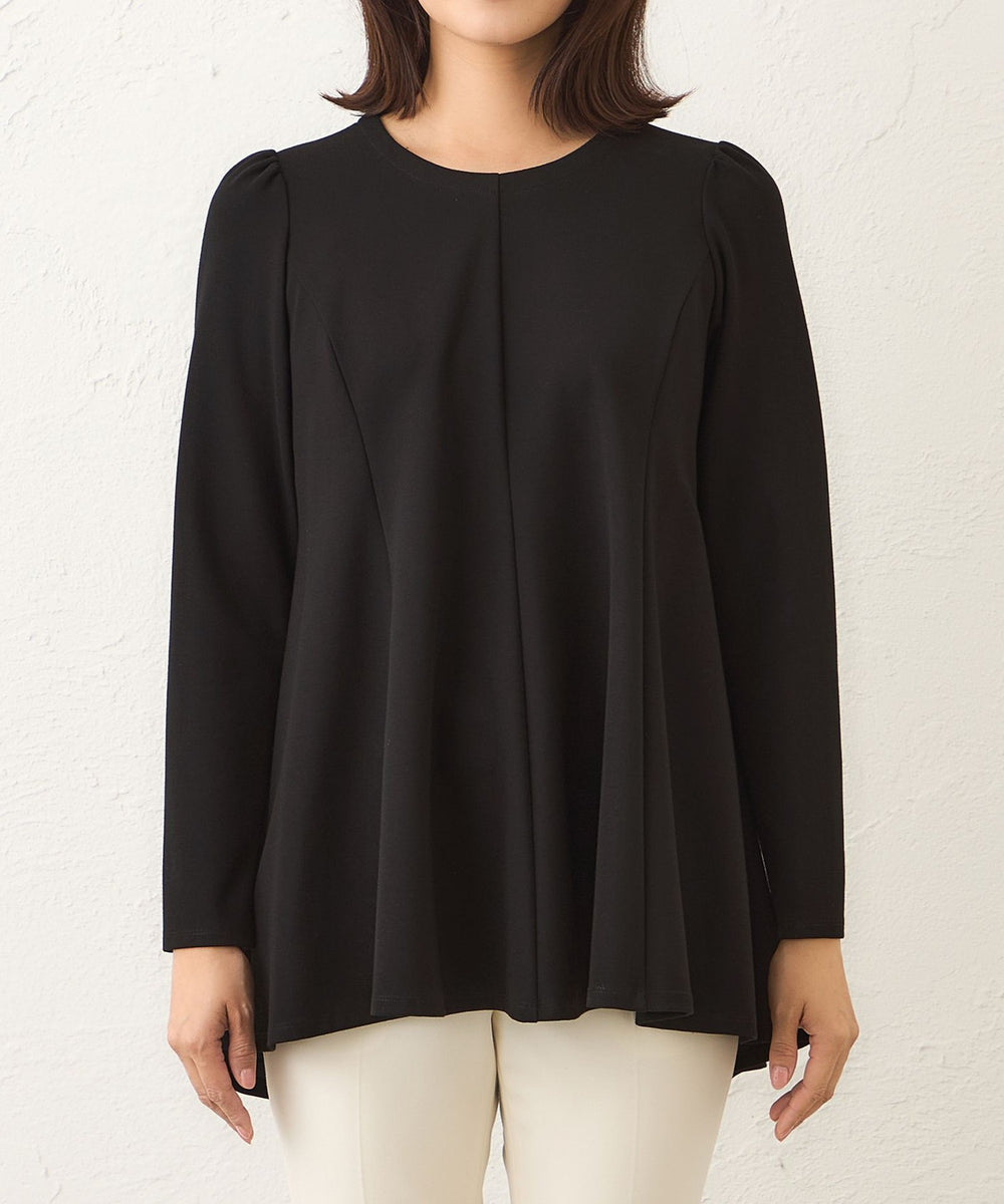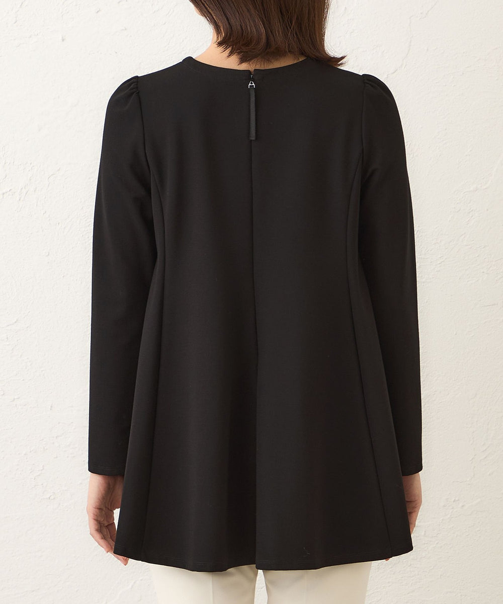 素材の張り感を活かしたボリュームのあるシルエットが魅力。シンプルながらも、裾にかけて広がるフレアが華やかな印象のチュニックです。パンツとのコーディネートにおすすめです。