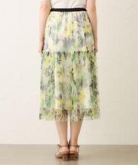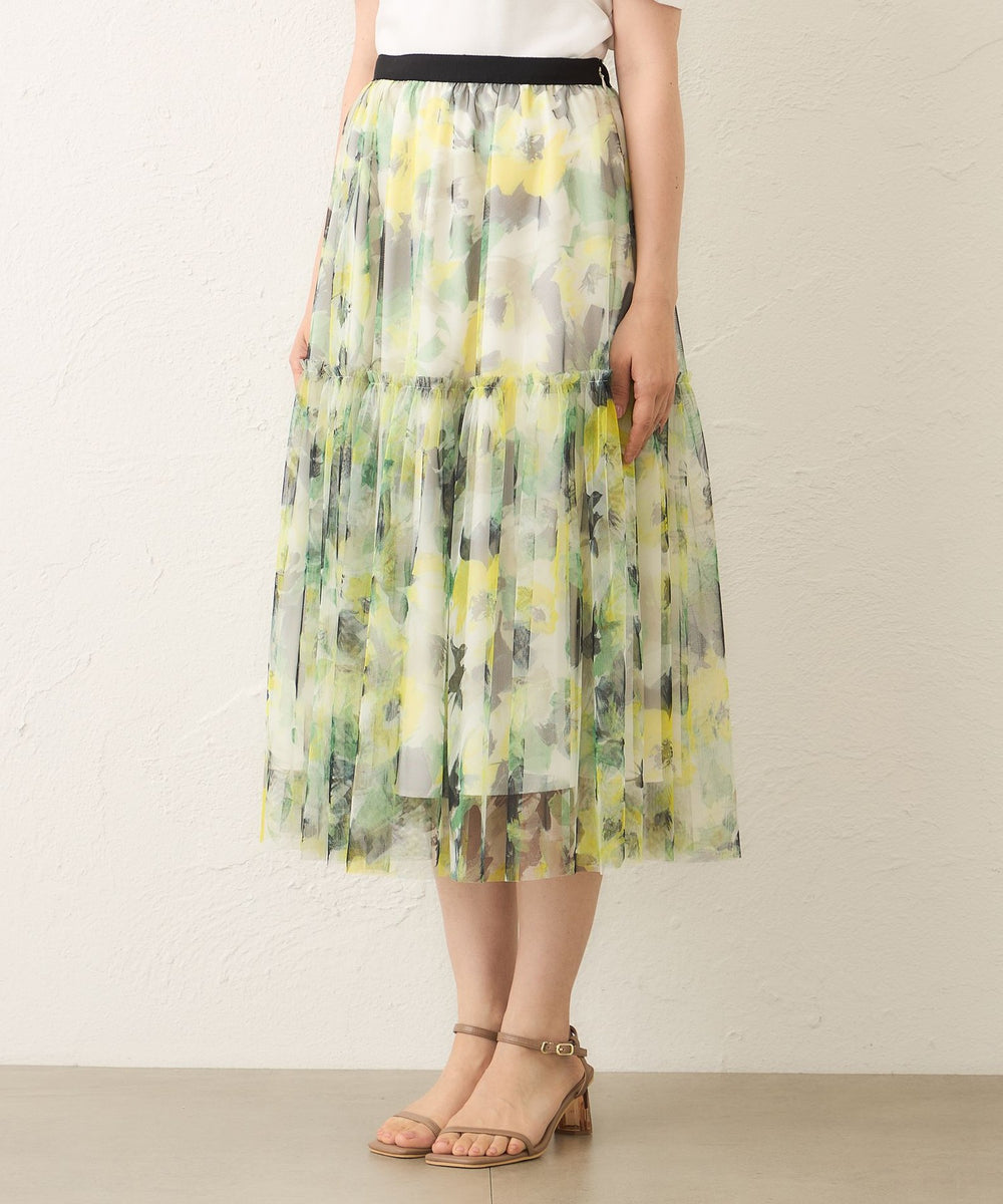 ボリューム感のあるティアードデザインにプリントをあしらった、夏らしい涼やかな印象のスカートです。