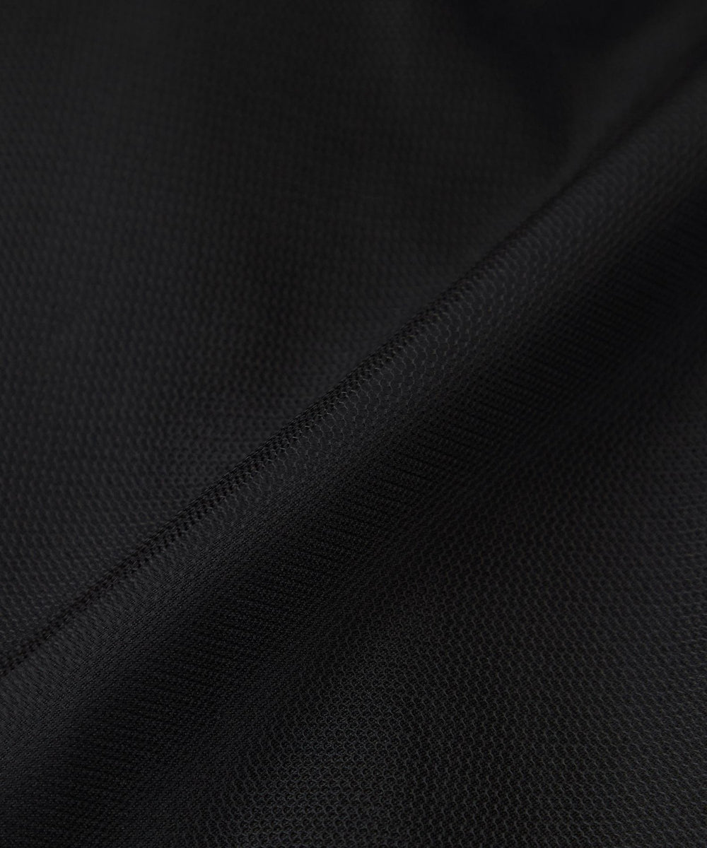 マルチフィラメント糸を使用したポリエステルチュール。しなやかさと程よいハリを併せ持つ上質な風合いに、六角形の繊細な網目が美しく映えるのが特徴です。