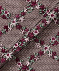 フラワーチェックの総柄で華やかさを添えた、多色使いの刺繍が印象的な素材。繊細なチュールをベースに使用することで、見た目の華やかさとは裏腹に、軽やかでしなやかな風合いに仕上げています。肌なじみも良く、快適な着心地を叶える、上品で着やすい素材です。