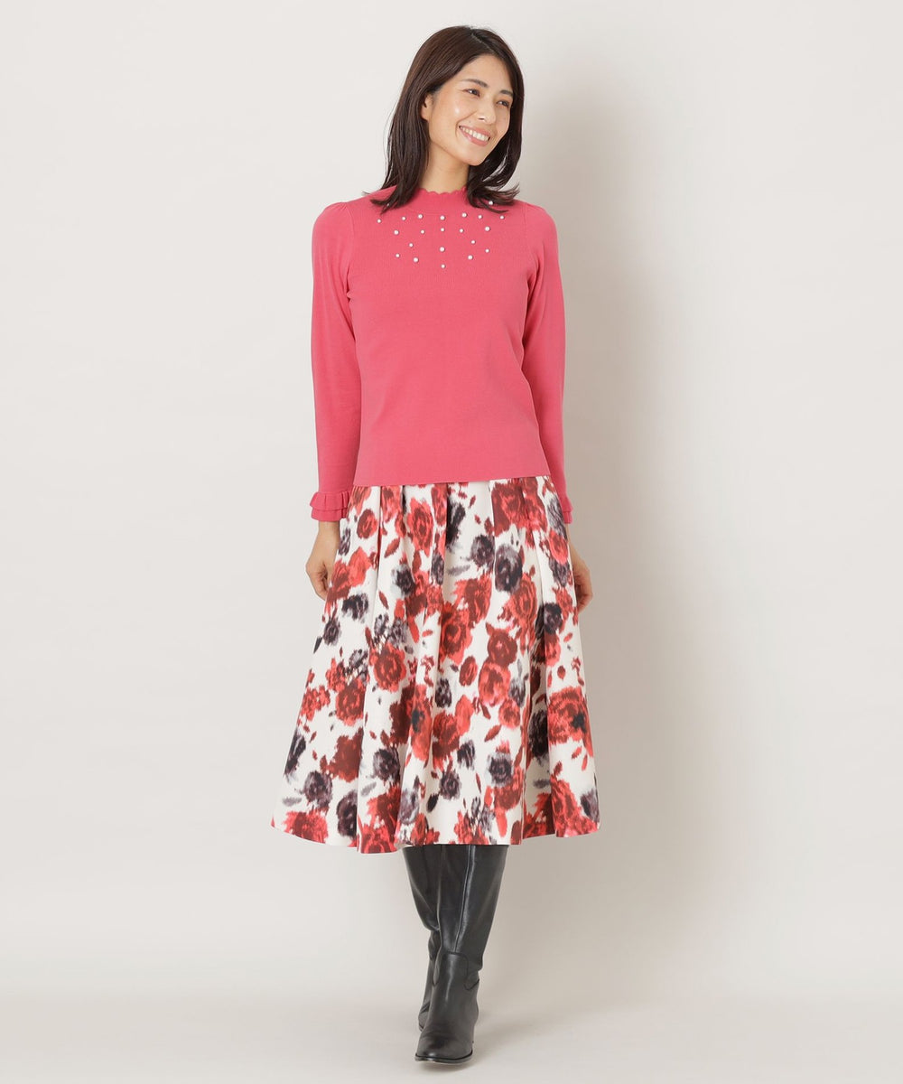 ランダムタックにより裾にかけてスッキリとしたフレアシルエットがポイントのスカートです。