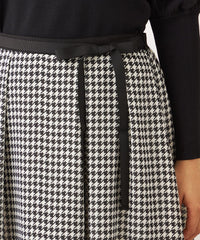程よい透け感と軽やかさが特徴の、国産梨地ジョーゼットプリント素材。減量加工にこだわることで、ふんわりとしたソフトな肌ざわりに仕上げました。クラシカルな千鳥柄が、上品で洗練された印象を演出します。