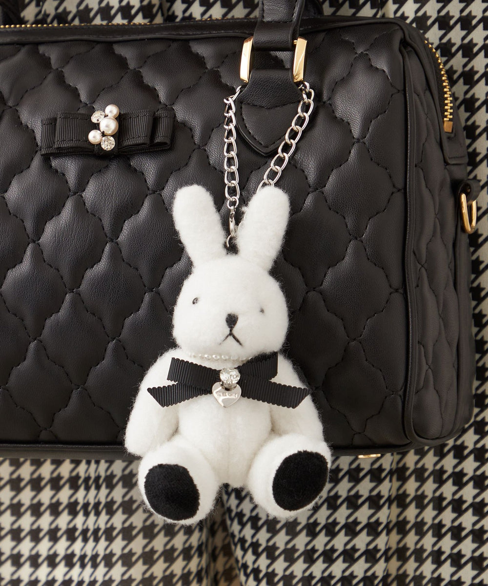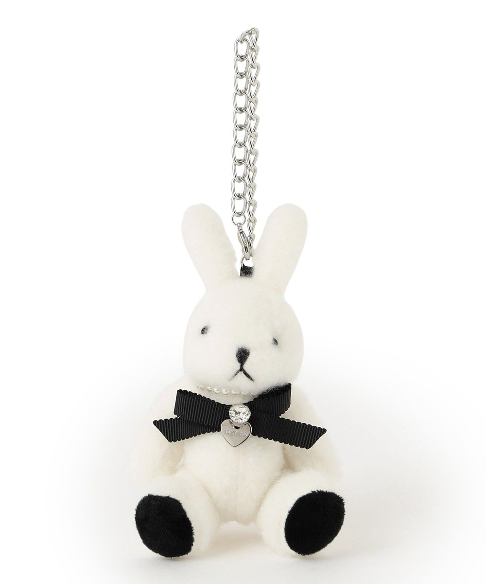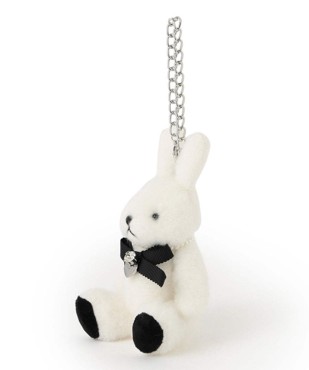 ラビットのバッグチャーム 愛称は双子のエマ。12カラー ピンクのラビットがお姉さんで、01カラー ホワイトラビットがやんちゃな妹です。フェイクファーのファンシーなデザインのうさぎチャームです。パール調パーツのネックレスの中心にはリボンと輝くビジューをオン。バッグチャームやお好みのところにつけておたのしみいただけます。