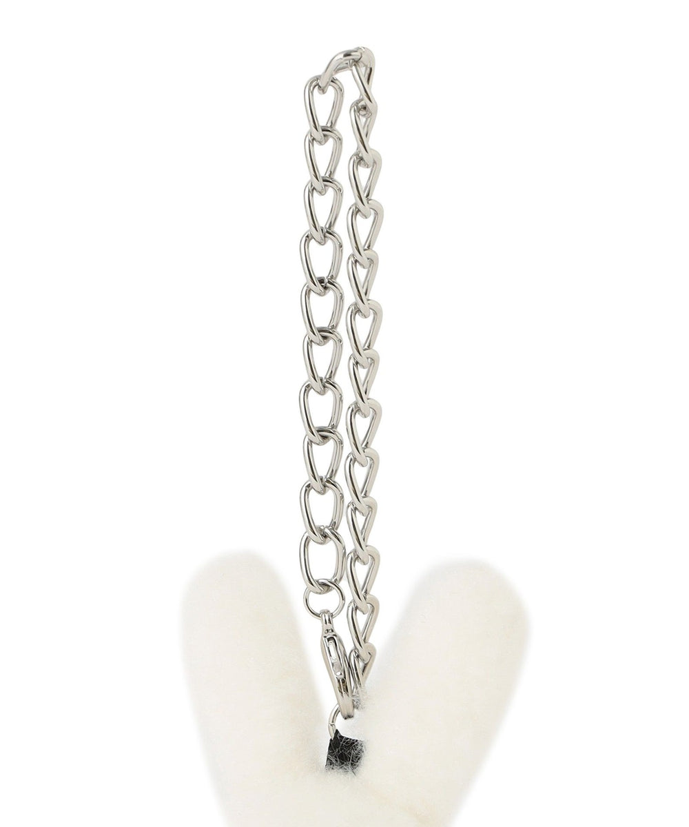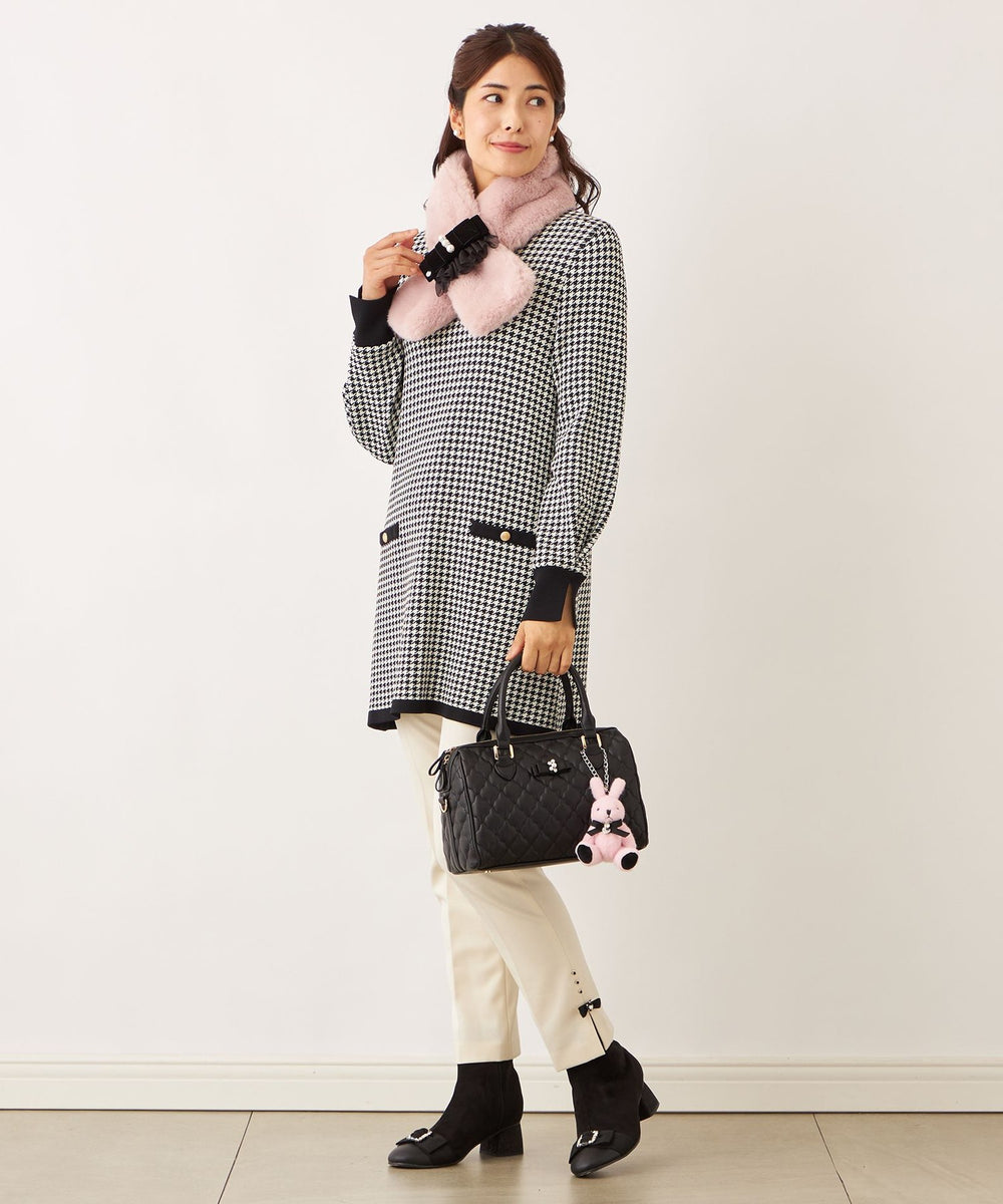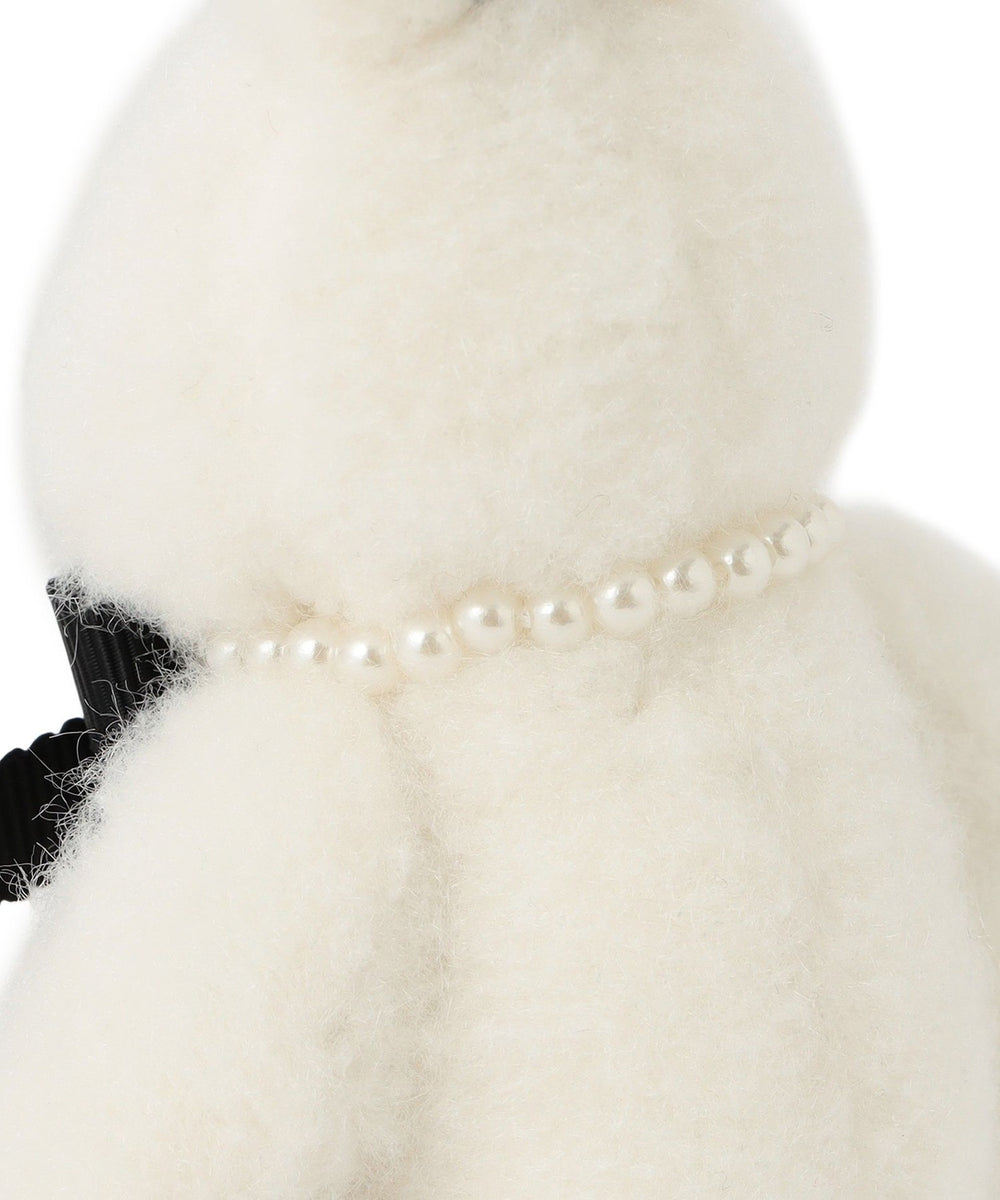ラビットのバッグチャーム 愛称は双子のエマ。12カラー ピンクのラビットがお姉さんで、01カラー ホワイトラビットがやんちゃな妹です。フェイクファーのファンシーなデザインのうさぎチャームです。パール調パーツのネックレスの中心にはリボンと輝くビジューをオン。バッグチャームやお好みのところにつけておたのしみいただけます。