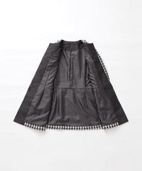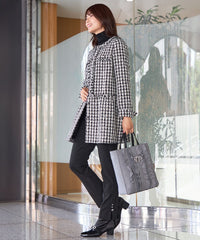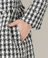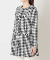【L】ハウンドトゥースツイードノーカラー ロングジャケット