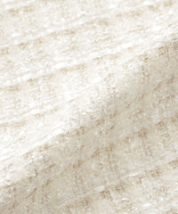 尾州の希少な織機で時間をかけて織り上げたツイード素材です。ラメ糸を織り込む事で光沢感に富みエレガントな素材に仕上げました。