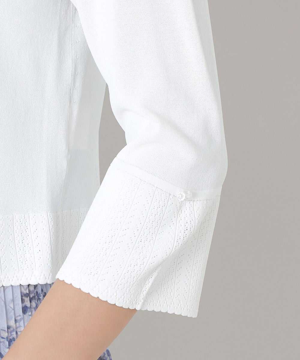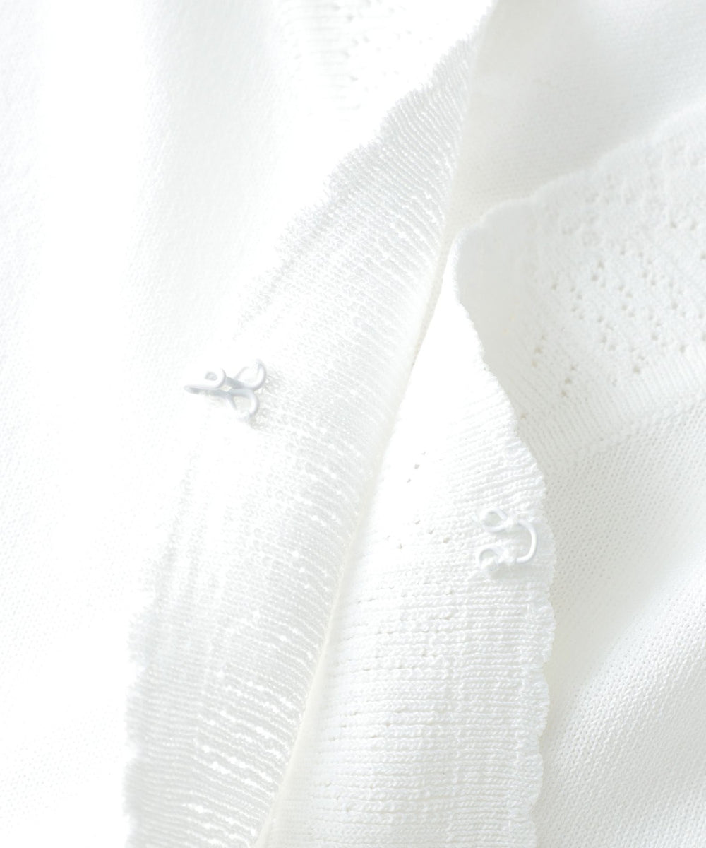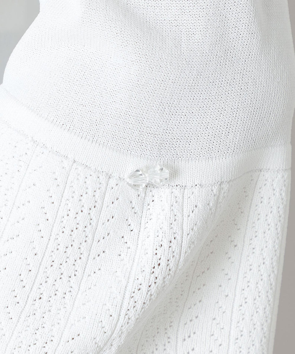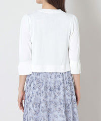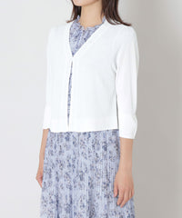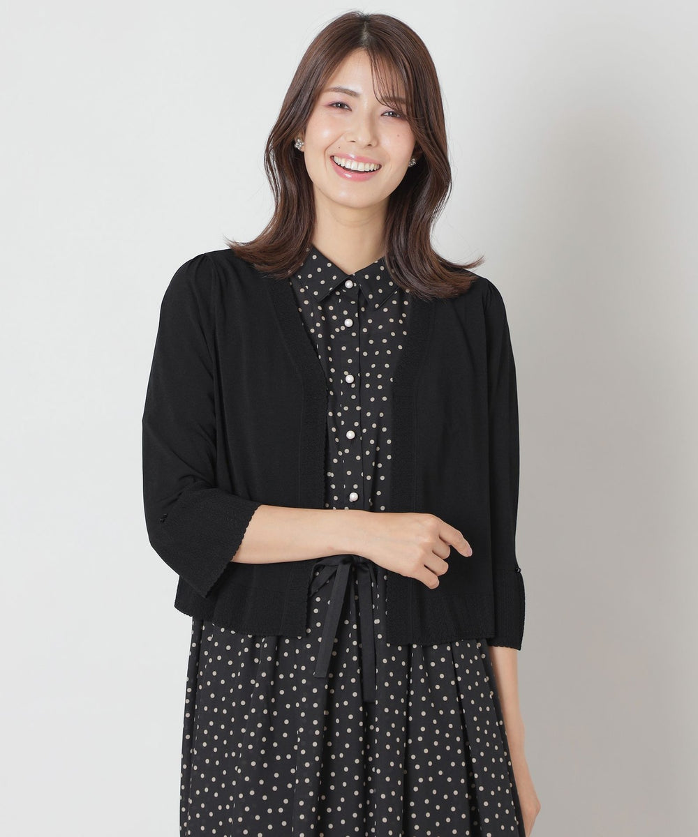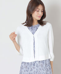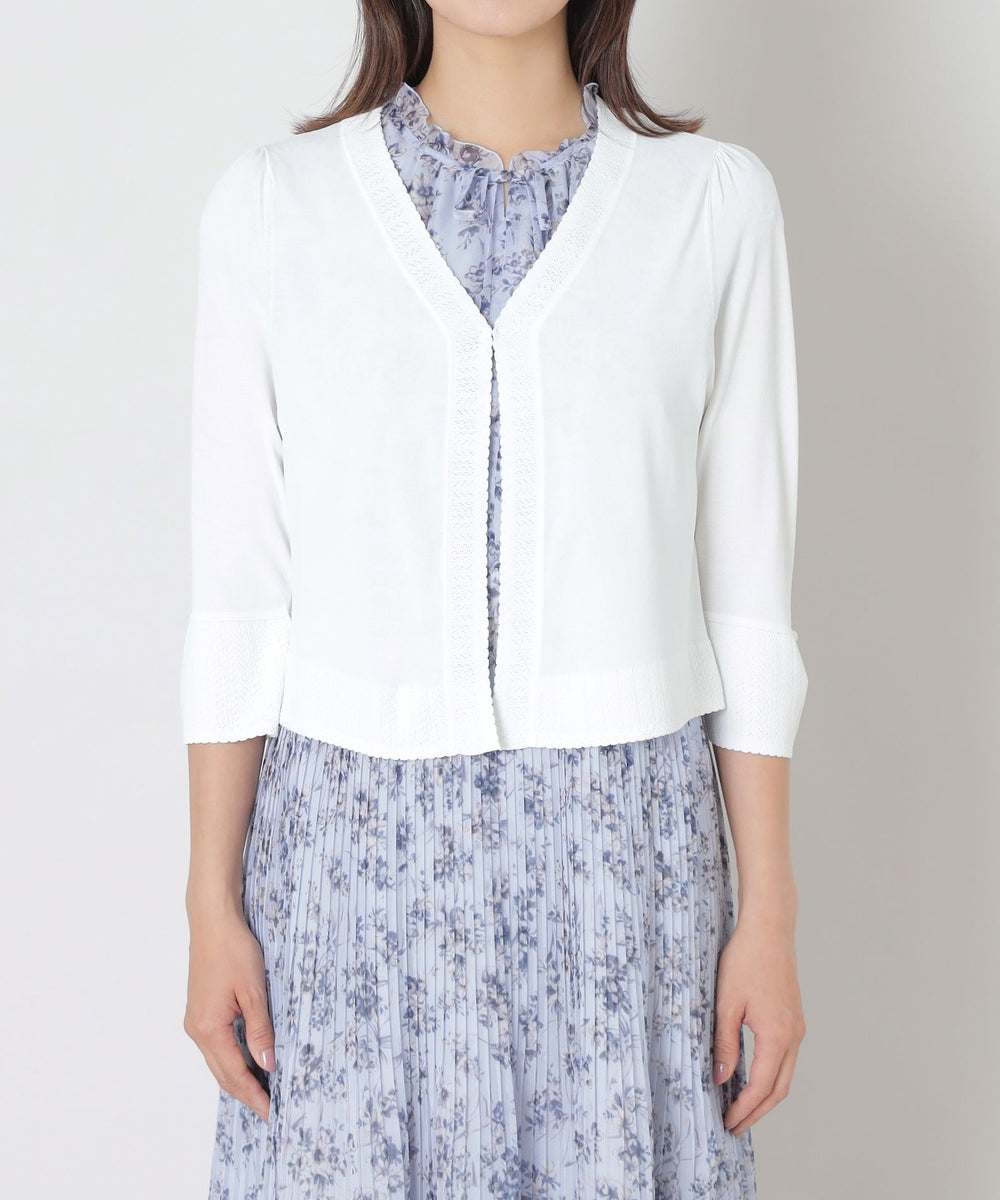 透かし編みをエッジにあしらった品のあるニットボレロです。