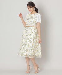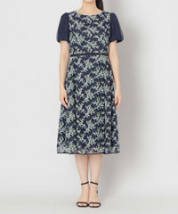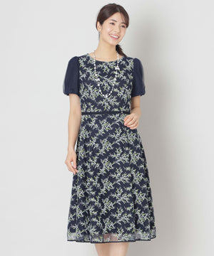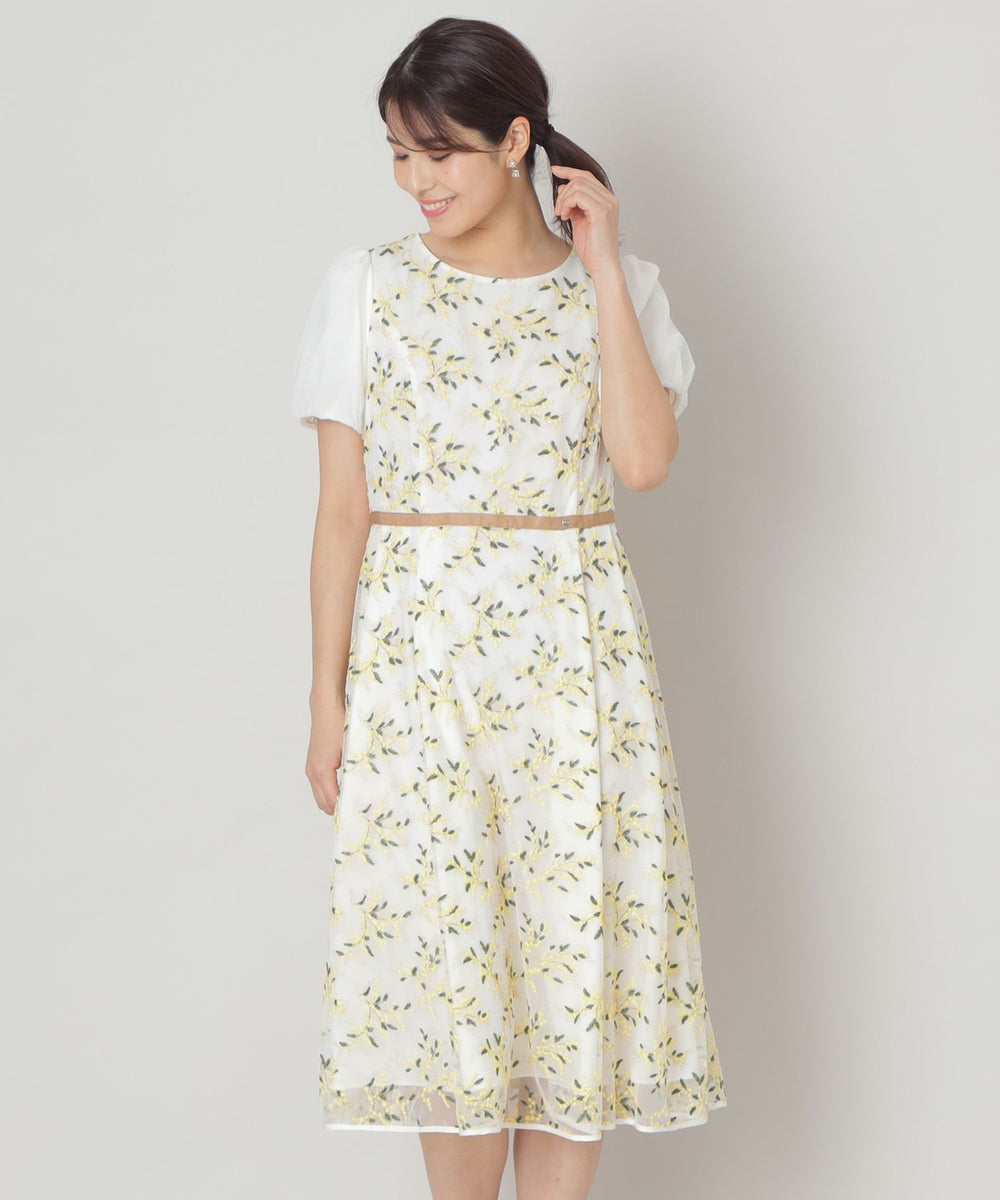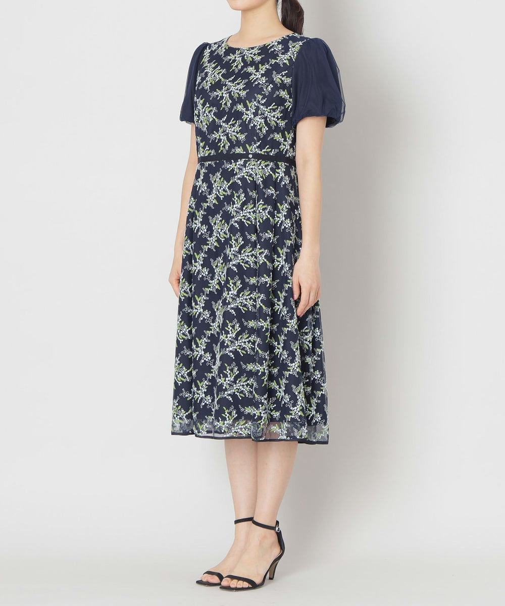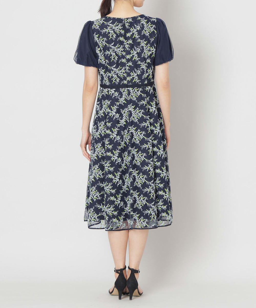 フィット&フレアラインのドレス。スカート部分はタックを入れて程よいボリューム感を表現したエレガンスな表情が特長です。