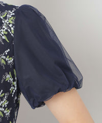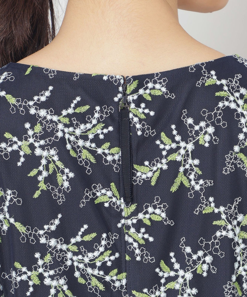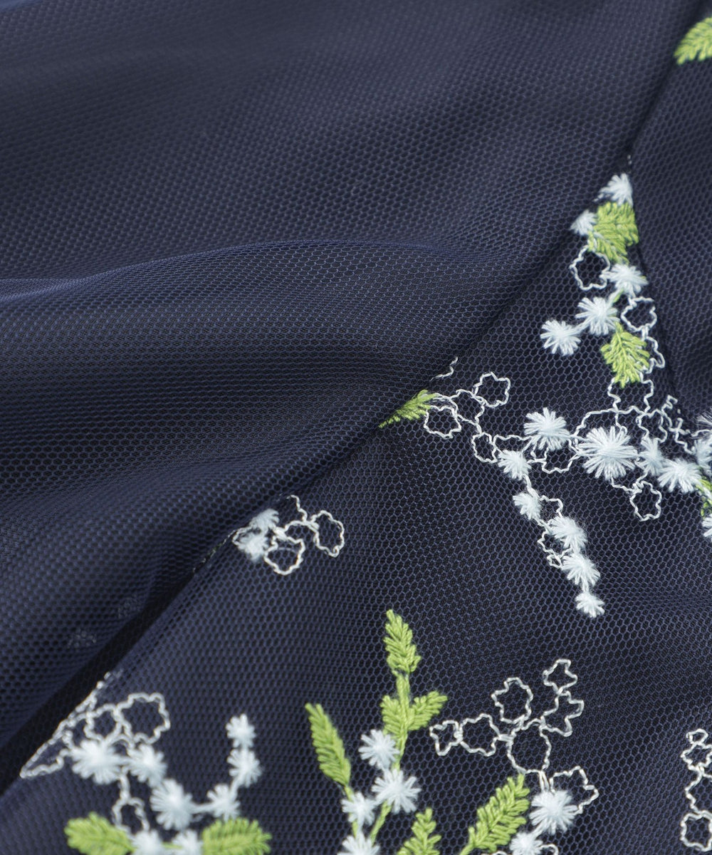 国際女性デーのシンボルであるミモザのモチーフを刺しゅうした意匠性の高いチュール素材です。花の中心が立体的になるように、ステッチを工夫し3色の糸を使用することによって、よりリアルな表現を実現した素材です。