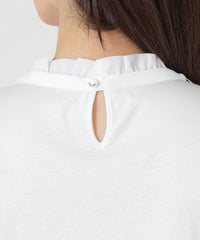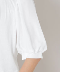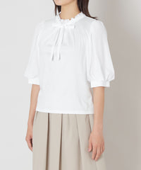 袖に別布使いのリボン帯仕様のカットソープルオーバーです。