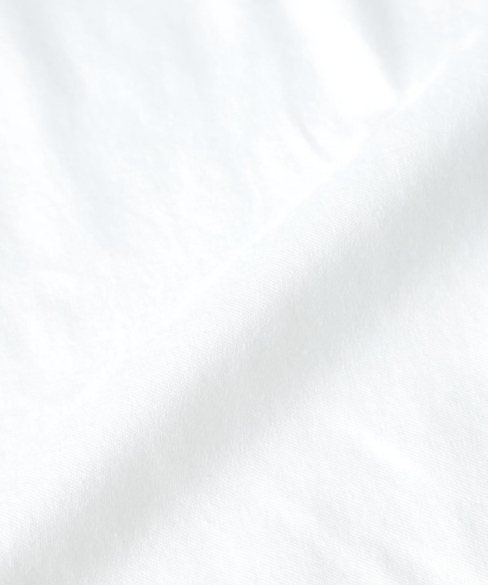 ハイゲージで編んでいるため、織物のようなきめ細やかな表情をしています。捲縮エステルを使用することで、伸縮のある生地になっています。光沢を引き出すためシルケットとガス焼き加工を施し、毛羽を極限までカットしてドレープのきいた伸縮性のあるファブリックに仕上げています。