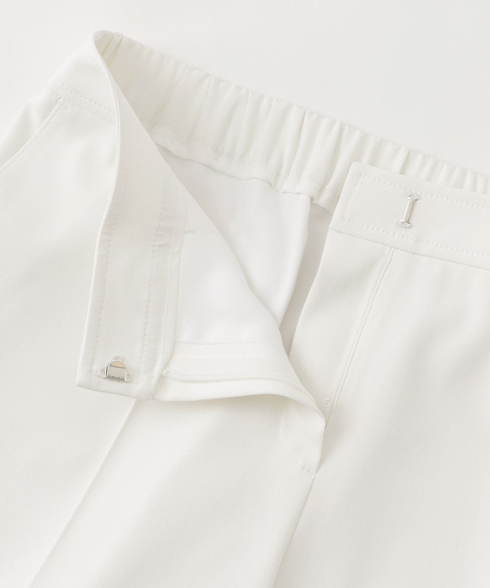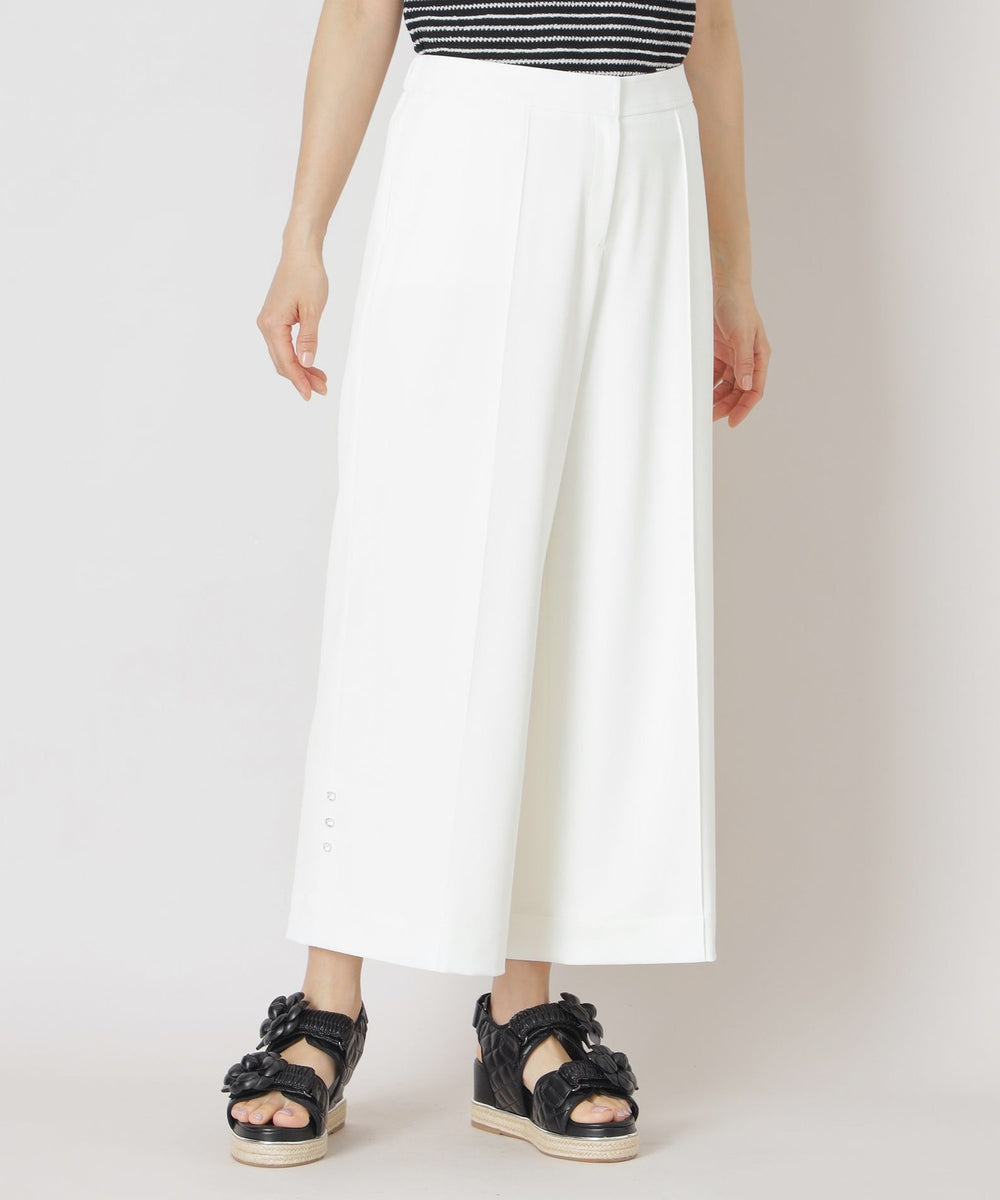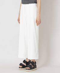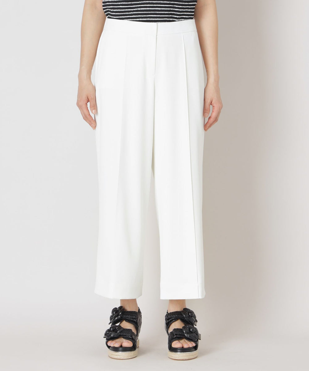 センターにつまみピンタックを施すことで、縦長効果を演出。腰まわりがすっきりと見える、きれいめシルエットのワイドパンツです。
