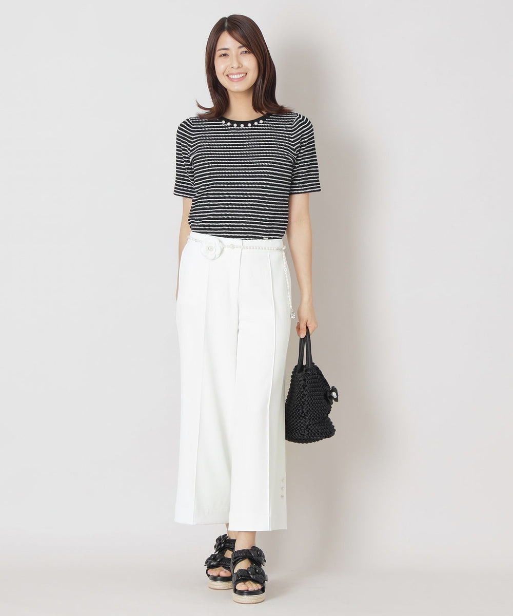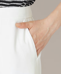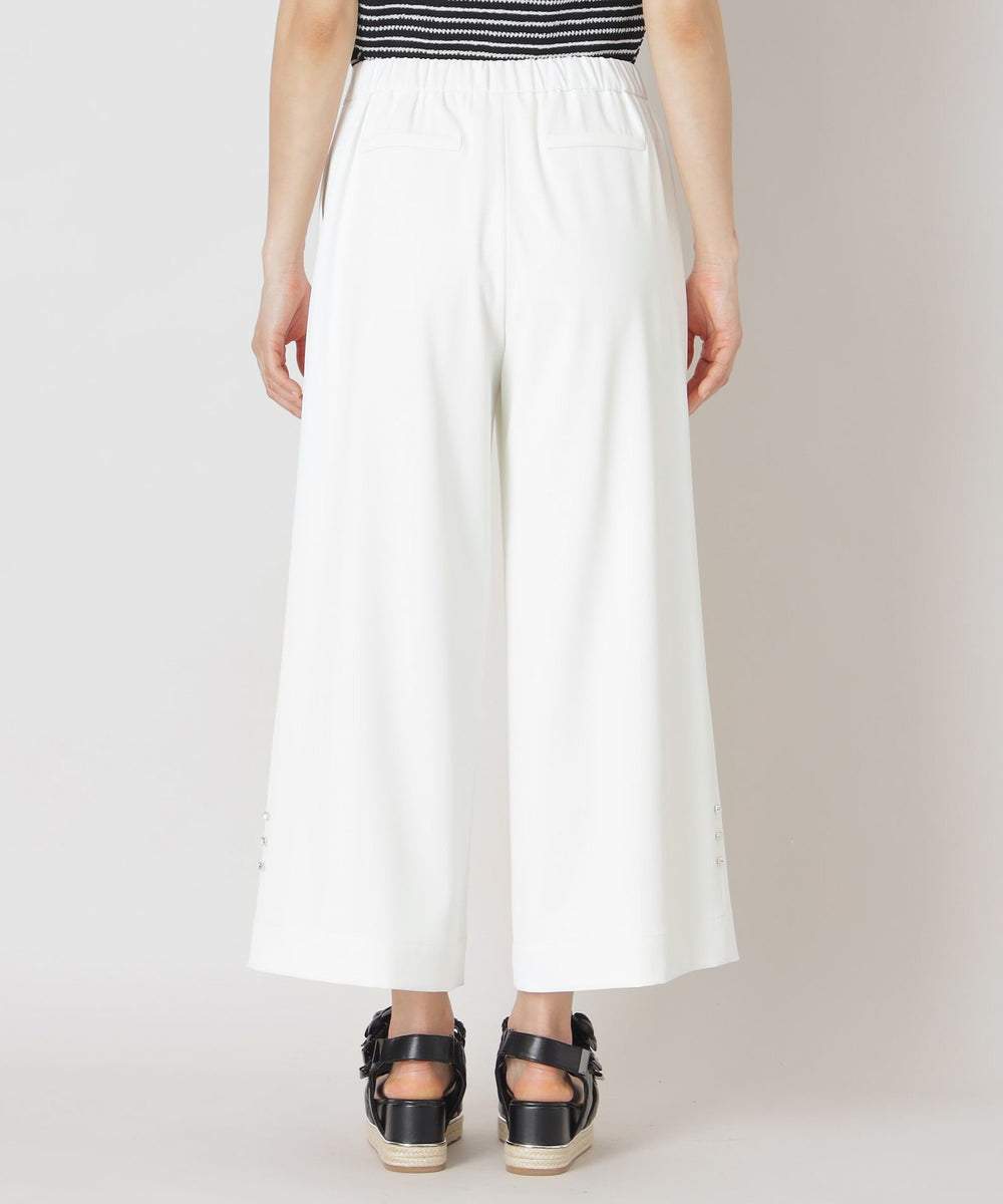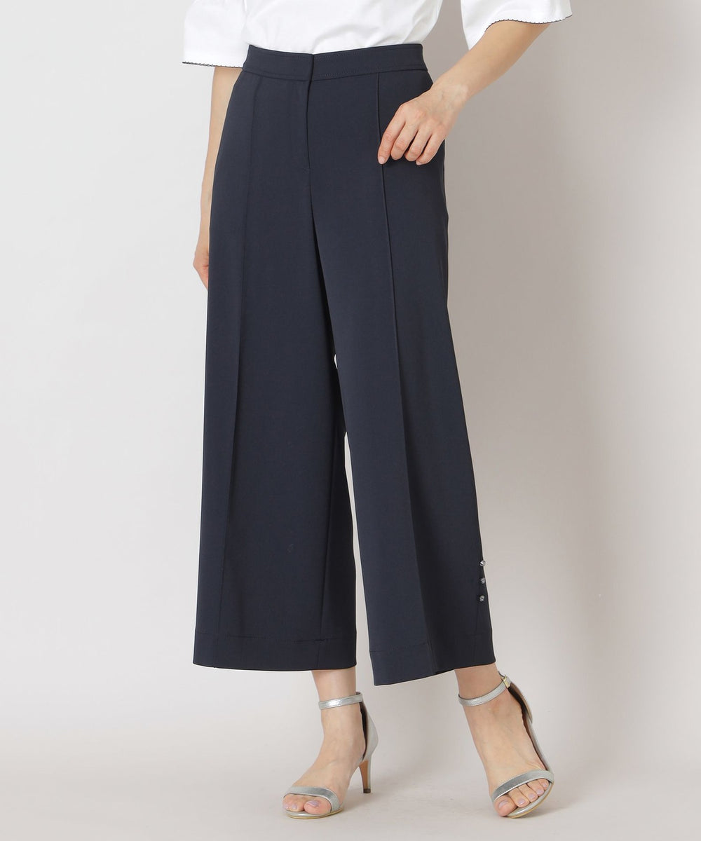 センターにつまみピンタックを施すことで、縦長効果を演出。腰まわりがすっきりと見える、きれいめシルエットのワイドパンツです。