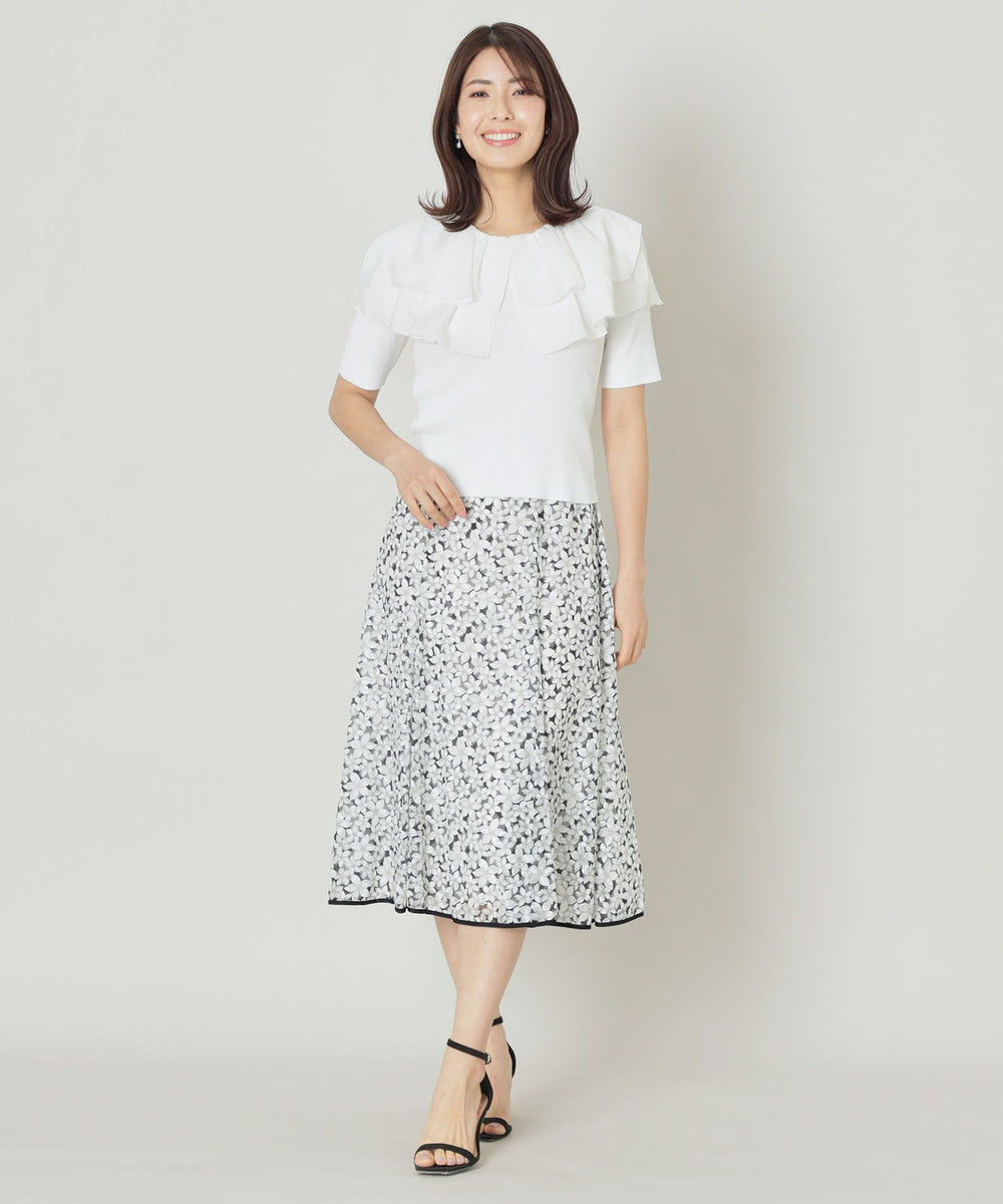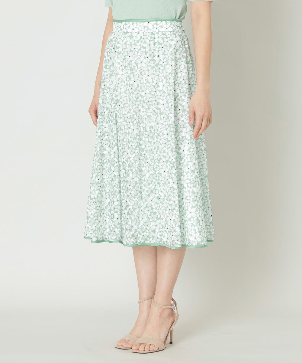 タテパネルの切替と裾にマチを入れることにより、タテ長効果で細見えのスッキリとしたシルエットデザインが特長のスカートです。